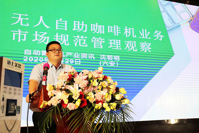 鏈上美飲咖啡飲料機銷售公司總經理鄭彬對會議政策進行解讀